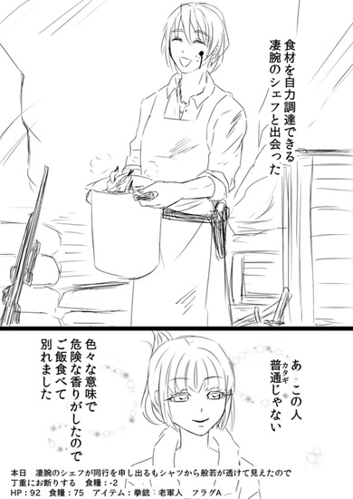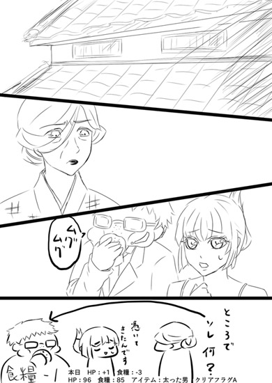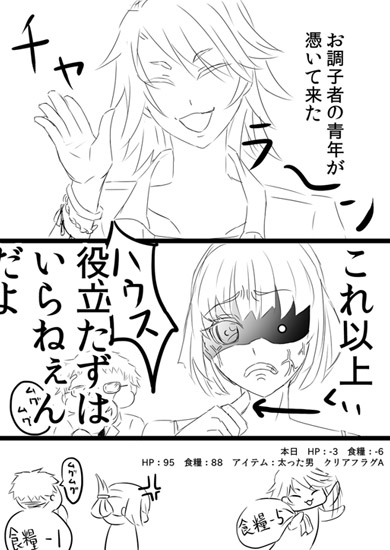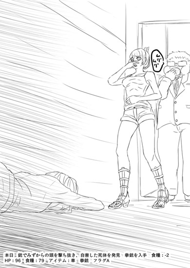 HP:96 食糧:81 アイテム:太った男 車 フラグA。